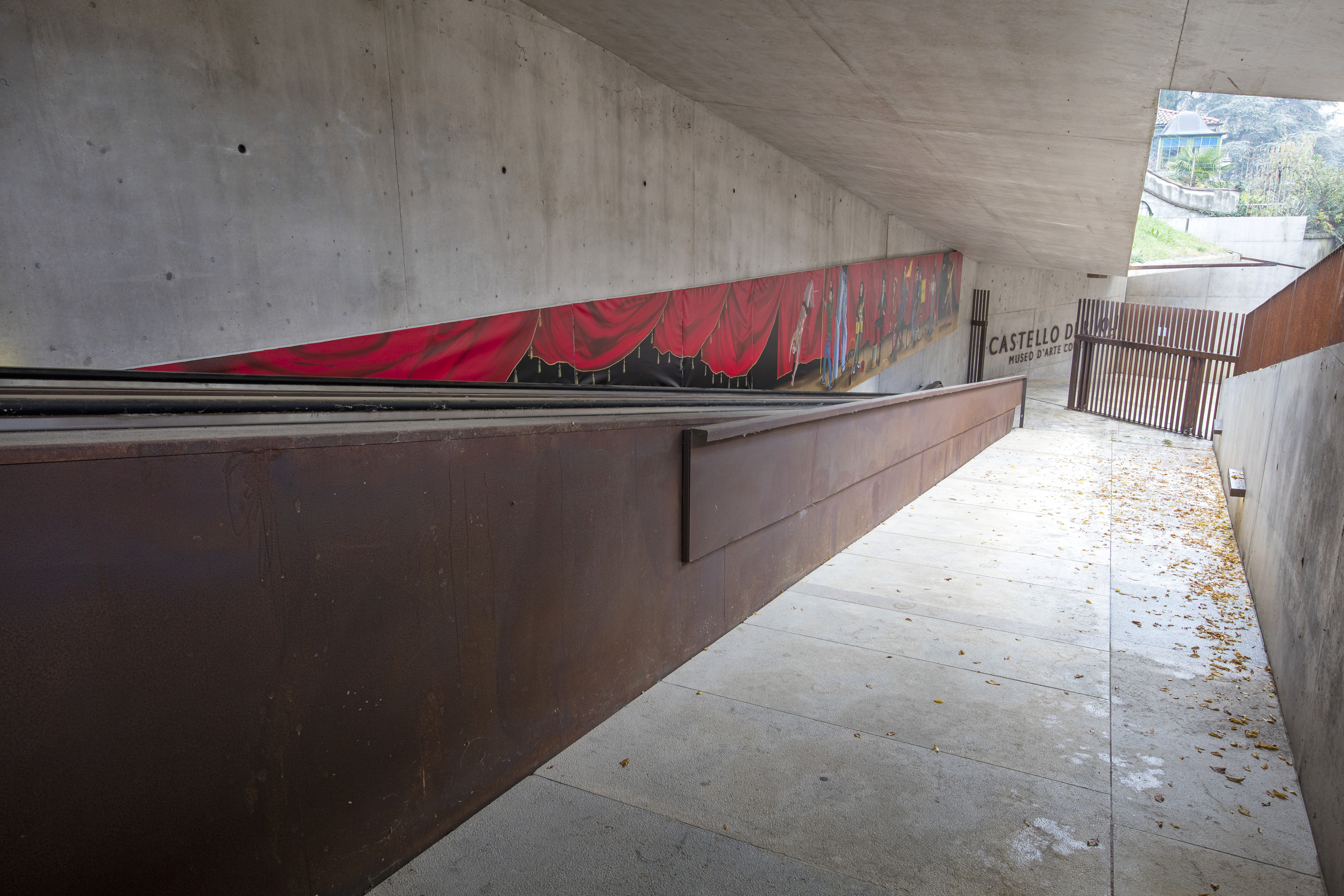 The Castello di Rivoli Museo d’Arte Contemporanea in collaboration with the City of Rivoli unveils a new program of site-specific commissions for the public space of the risalita meccanizzata, an automated escalator system connecting the historical city center to the piazzale by the Castello. Specific areas of the pathway, closed since 2011, will be reinstated and opened to the public to view the artworks during the opening hours of the Museum.